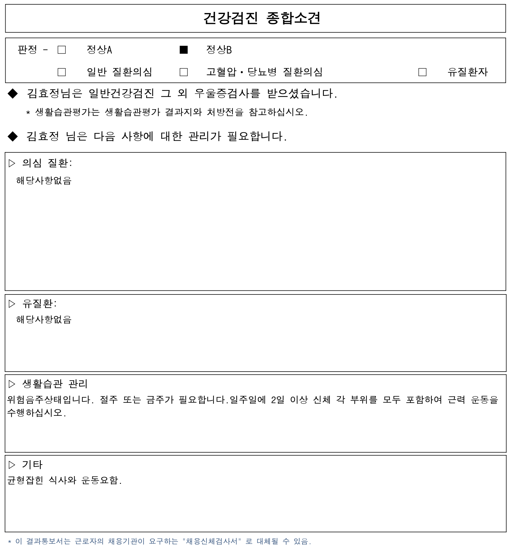 - ✔ 종합검진 (대형병원) → 검진 당일 또는 1~3일 이내